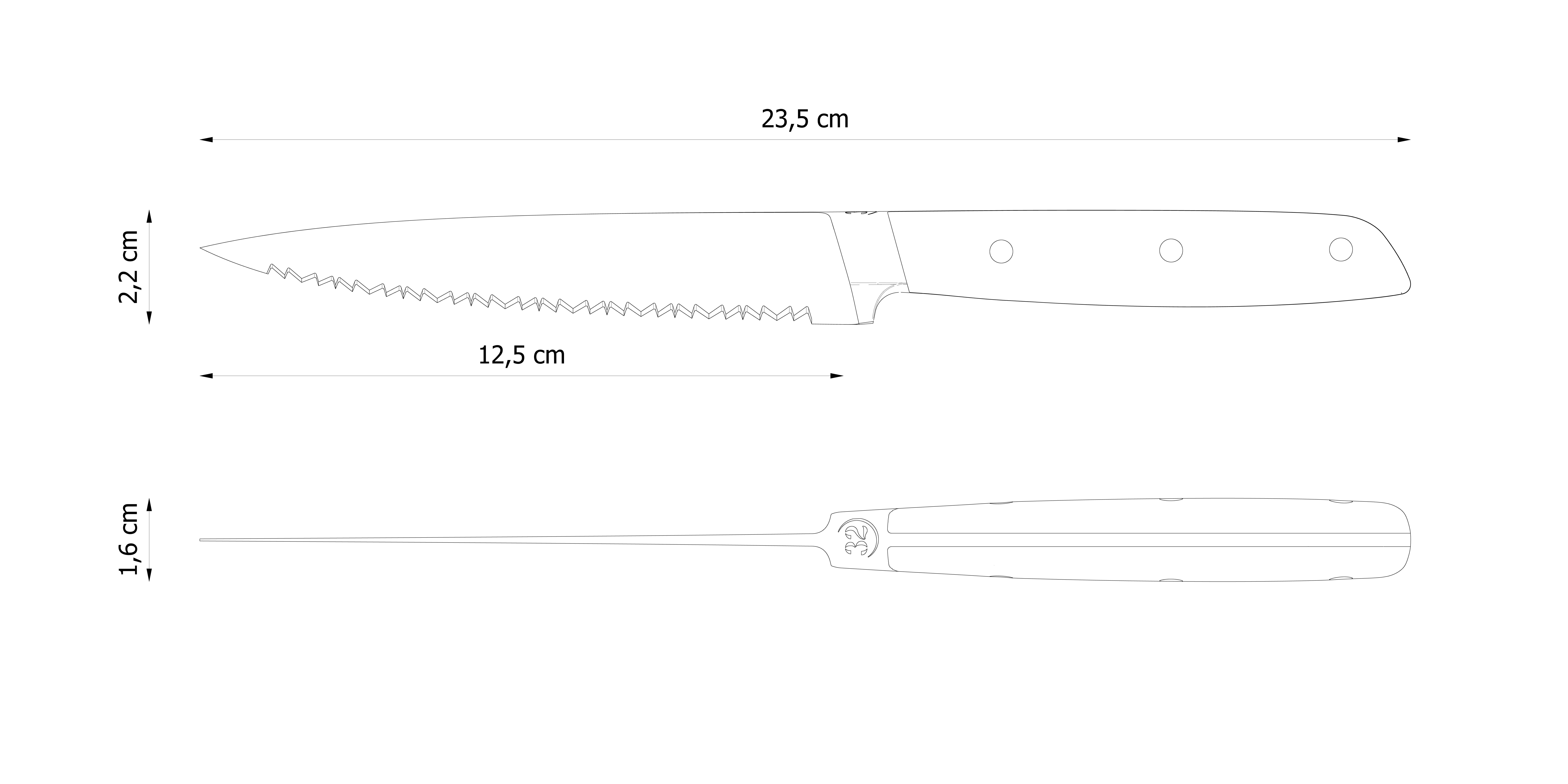 Ce couteau est idéal pour peler et découper les aliments à peau dure tels que les tomates, les agrumes (citron, orange, pamplemousse).